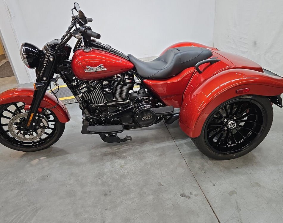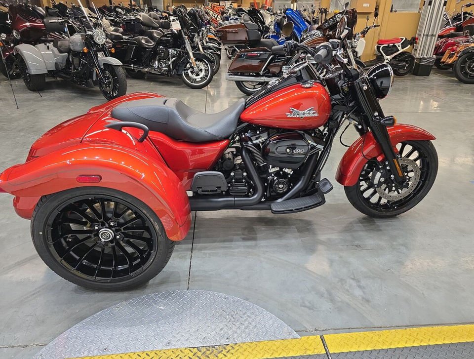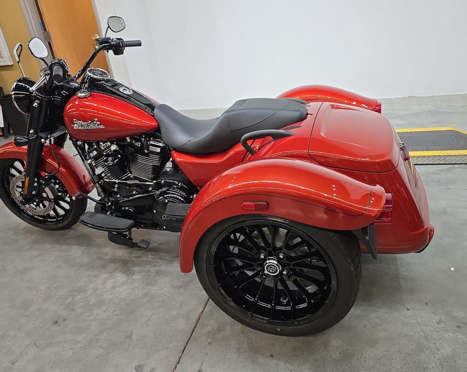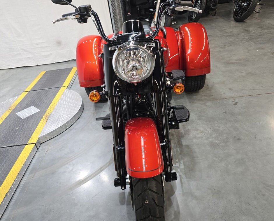 This vibrant orange trike delivers pure cruiser attitude with the rock-solid stability of three wheels. You will love the massive rear storage space that makes every weekend road trip a total breeze. The low-profile design ensures you stay grounded while carving through corners with absolute confidence. It is the perfect blend of classic Harley soul and modern three-wheel performance for any rider. Harley-Davidson Freewheeler